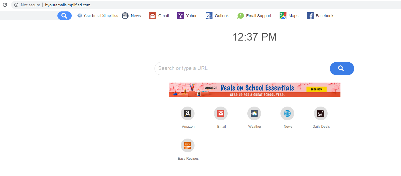 The site itself looks like any other hijacker websites. It has a search engine box, links to sites like Amazon and Gmail, and displays the weather. As can be judged from the site name, Hyouremailsimplified.com tries to simplify using email. However, all it really does is provide shortcuts to Yahoo, Outlook, and Gmail. That’s not particularly useful, and you can find plenty of browser extensions that have better features to make using email easier.