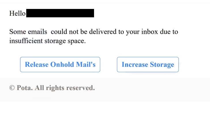 This phishing attempt is relatively generic and warns users that their email accounts are low on storage, which supposedly resulted in some emails not being delivered. The email includes two buttons, urging users to click them to supposedly increase storage capacity and retrieve emails. However, clicking either of the buttons redirects users to a phishing site that prompts them to log in to their email account.